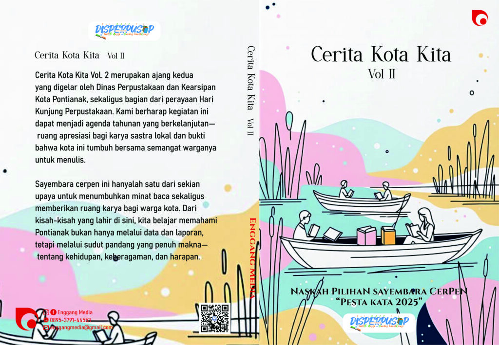 Pontianak tidak hanya tumbuh dari deretan jalan dan jembatan, atau dari geliat ekonomi yang terus hidup di tepian Sungai Kapuas. Kota ini juga tumbuh dari cerita-tentang orang-orangnya, tentang riuh pasar dan sunyi gang kecil, tentang rindu, tawa, dan perjuangan yang menjadi denyut kehidupan sehari hari. Melalui Cerita Kota Kita Vol. 2, kita menyaksikan bagaimana Pontianak diabadikan lewat bahasa, dibingkai oleh imajinasi, dan dihidupkan kembali dalam kisah-kisatr pendek yang lahir dari tangan para penulisnya. Setiap cerita menjadi cermin kecil dari wajah kota hari ini. Mungkin tak selalu menyenangkan, nzlmun pasti penuh harapan. Fiksi memiliki kekuatan yang kerap melampaui batas kebijakan dan data. Ia mengajarkan kita untuk memahami bukan hanya apa yang tampak, tetapi juga apa yang dirasakan. Ia menumbuhkan empati bekal penting bagi kita dalam membangun kota yang bukan sekadar maju dan sejahtera, tetapi juga berwawasan lingkungan dan humanis. Karena hanya dengan empati, pembangunan mer{adi lebih dari sekadar infrastrulAur. Ia menjadi jembatan hati antara pemerintah dan warganya.